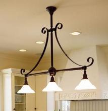 How much does the Scroll Arm French Country Style Kitchen Island Pendant Weigh?Our French Country Style Kitchen Island Three-Light Pendant weighs between 15 to 20 pounds with glass shades. The model number is CN-450-A4-03M and the name is Shoreland Three Light Scroll Chandelier with 2-1/4" shade holders. ![]() |